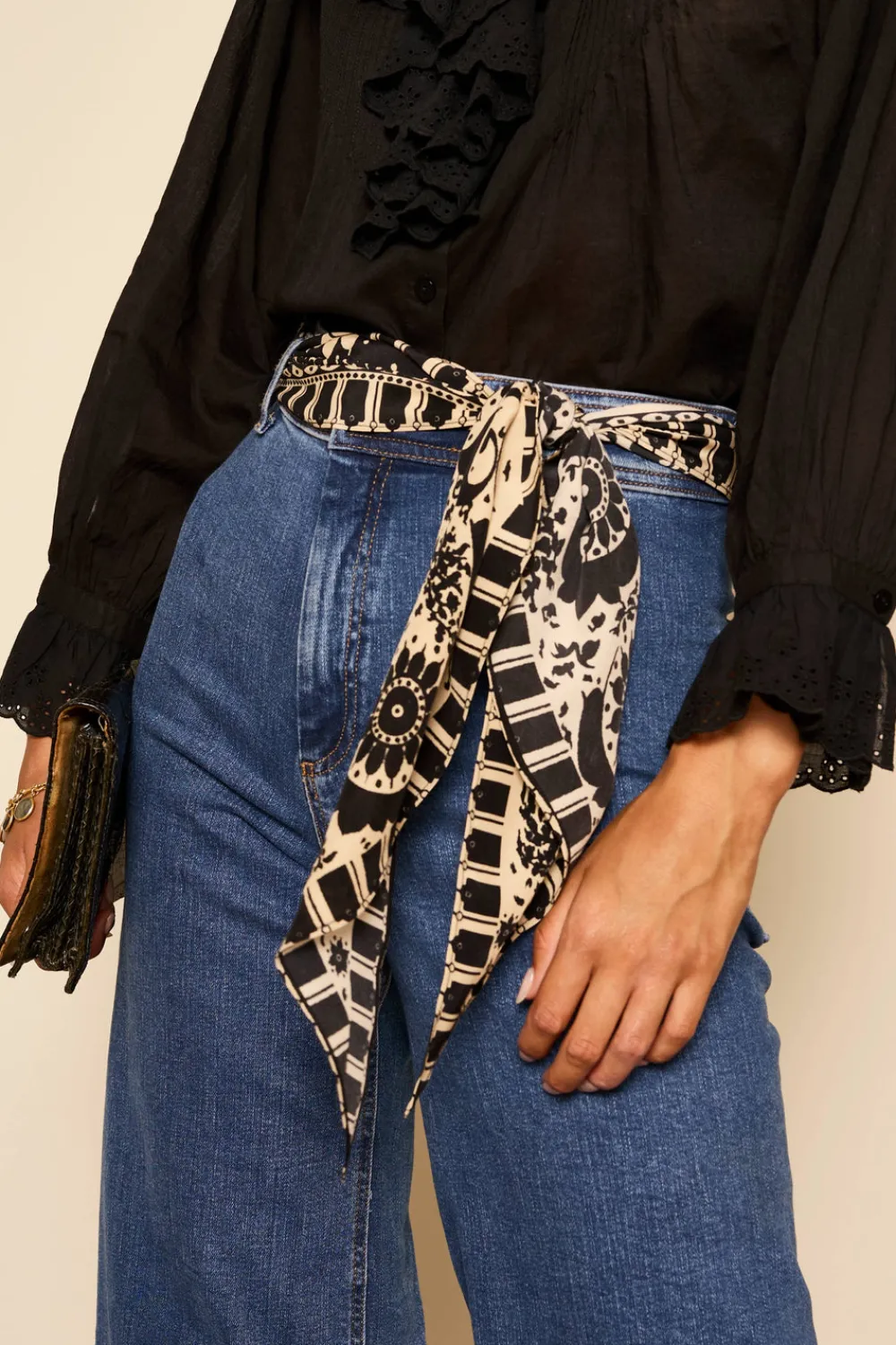 Our scarves are one of the easiest ways to transform an outfit. Arianne is printed with timeless paisley and is long enough to knot around your neck or to a bag.
