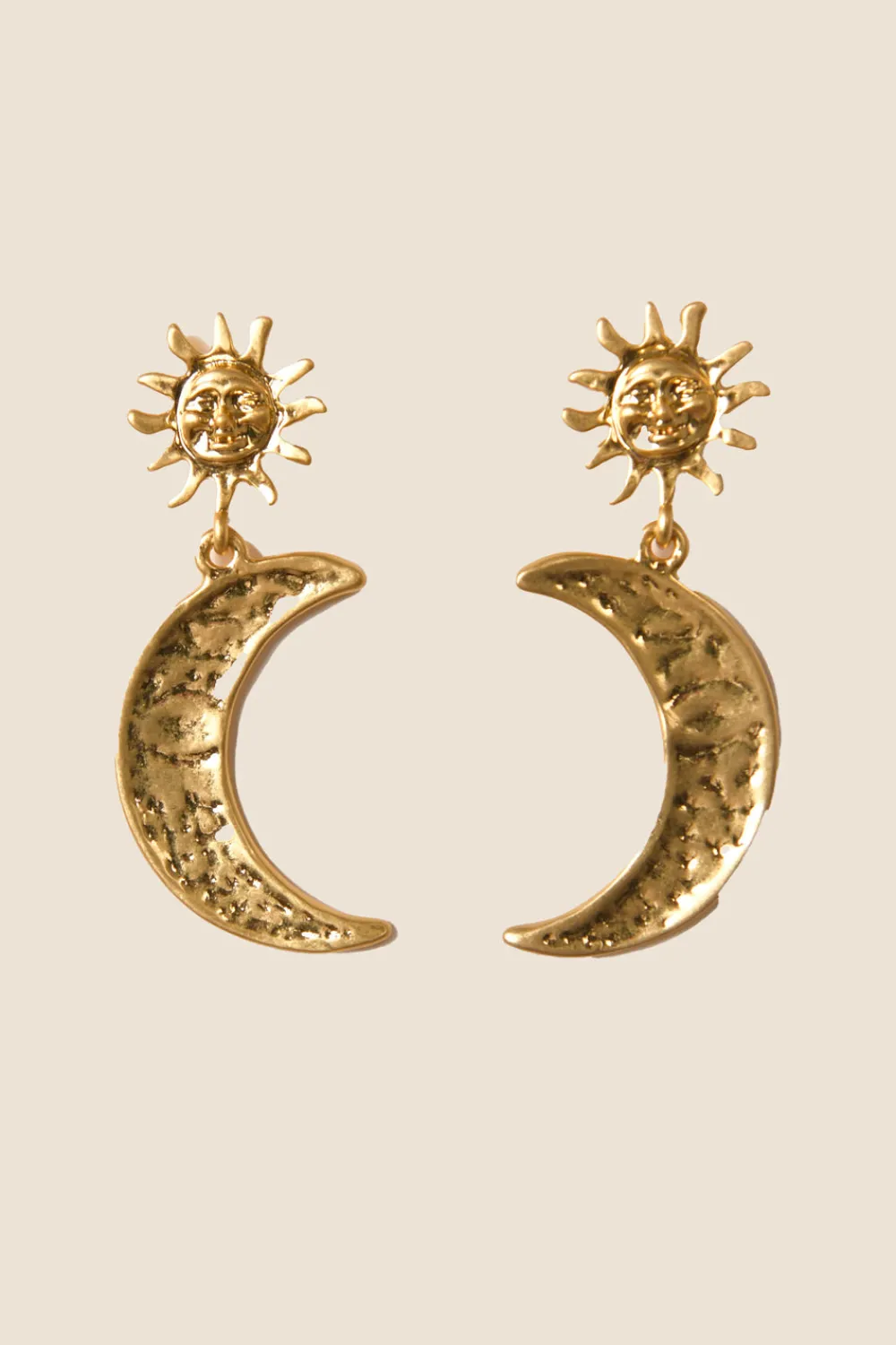 These celestial Davies earrings are inspired by vintage styles. They’re made from 18-karat gold-plated brass and hammered so the sun and moon charms appear to twinkle as the light hits.