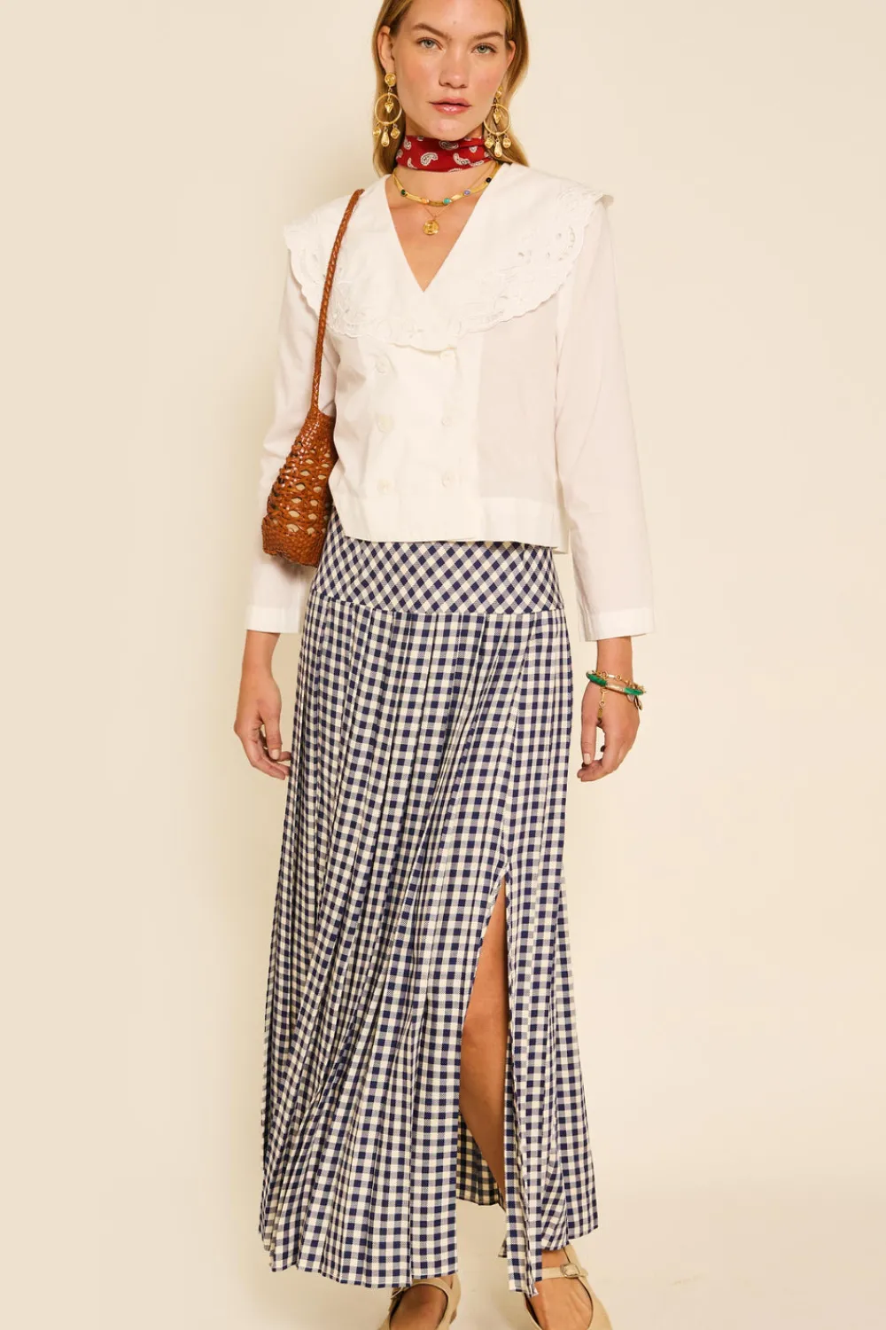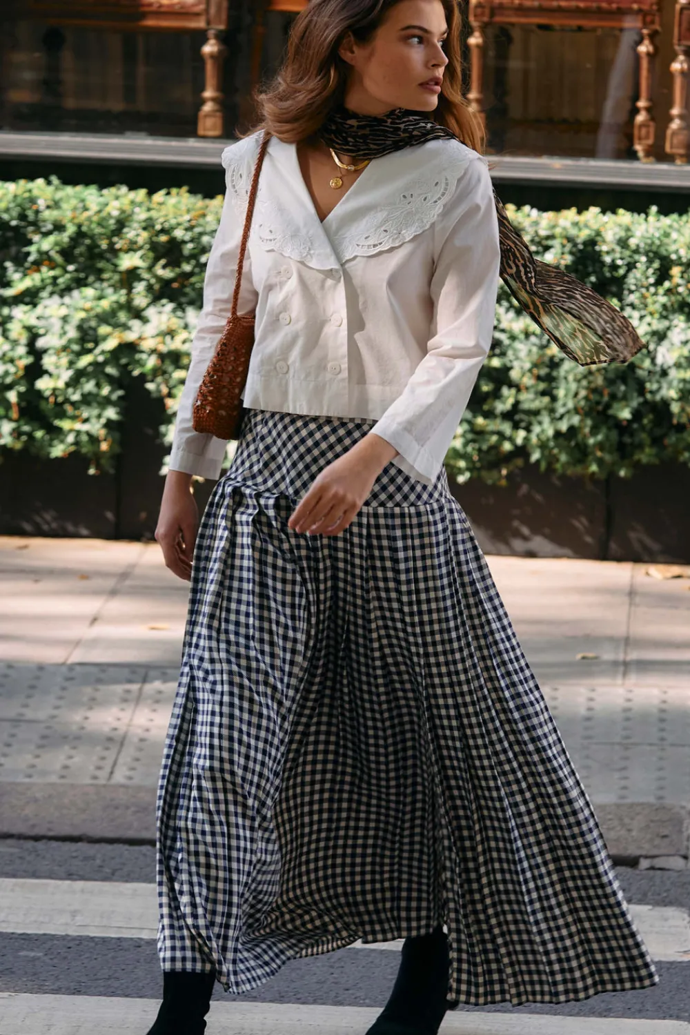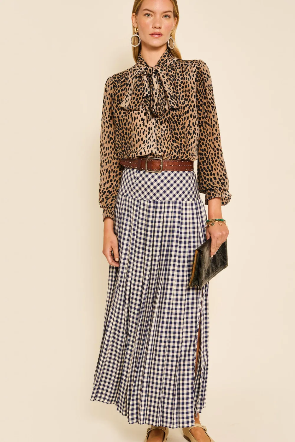 Available in regular and petite. Tina was one of the first RIXO skirts, which we’ve tweaked so it fits better than ever. Wide pleats create volume but the flat waistband and side slit balance proportions so it doesn’t swamp your frame.